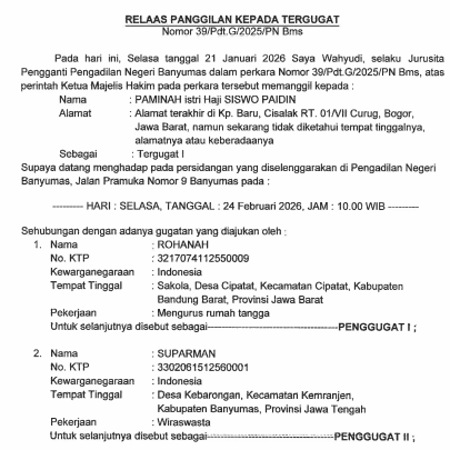 Relaas Panggilan 39/Pdt.G/2025/PN Bms