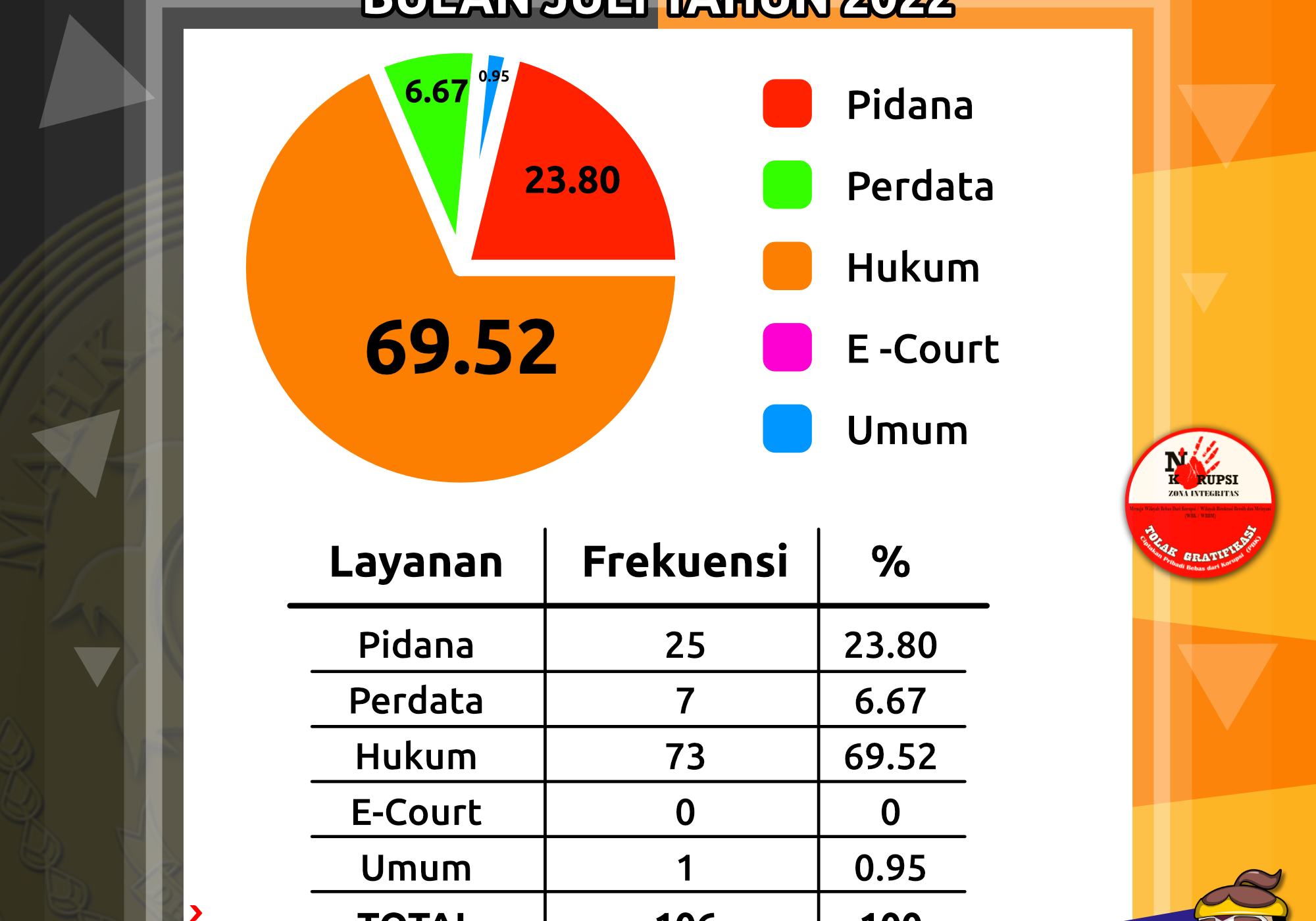 Berikut Kami Sampaikan Assesment Meja PTSP Perbagian Bulan Juli 2022 Pengadilan Negeri Banyumas
