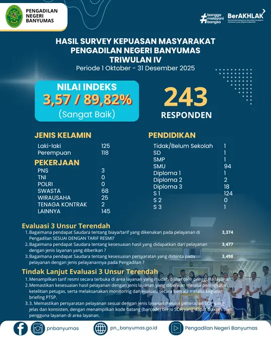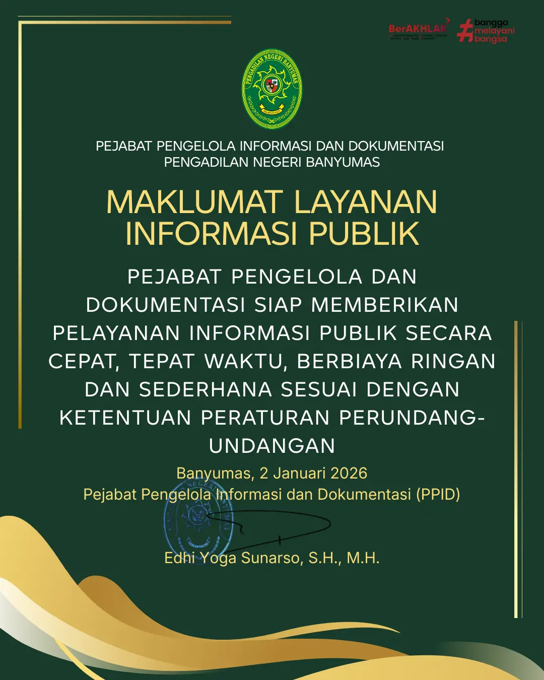 Dalam rangka menyambut Hari Raya Idul Fitri 1447 Hijriah, Pengadilan Negeri Banyumas menyampaikan apresiasi dan terima kasih atas perhatian serta niat baik dari berbagai pihak kepada seluruh aparatur Pengadilan Negeri Banyumas. Namun demikian, sebagai bentuk komitmen dalam menjaga integritas serta mendukung terwujudnya lingkungan peradilan yang bersih dan bebas dari praktik korupsi, kolusi, dan nepotisme, seluruh…